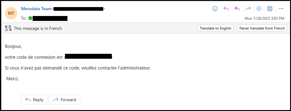 1. Once selected, the system will send an email to retrieve the login code in the chosen language.