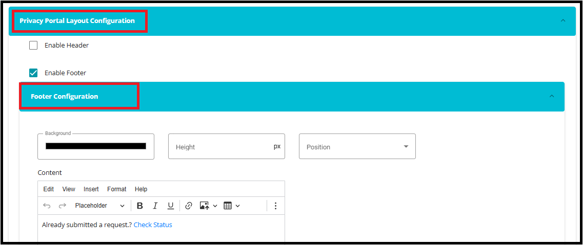 1. Click on "Footer Configuration" under the Privacy Portal Layout Configuration section.