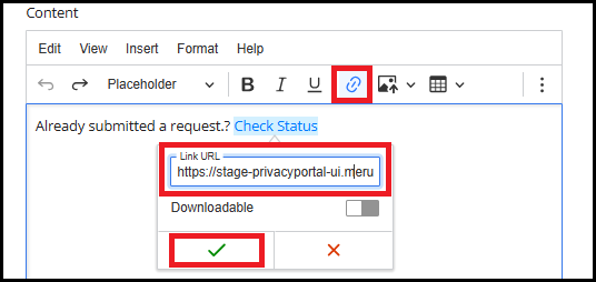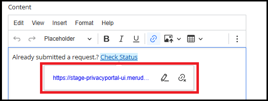 1. Click on the text "Check Status"- This text is the display name considered here for the Privacy Portal login link.