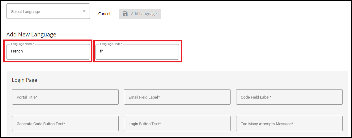 For example, if the language code added during translation is "it", the portal login URL must include "?lang=it". Any mismatch between the configured language code and the URL parameter will prevent the portal from loading in the selected language.
