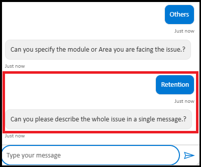 • After you provide the module name, you will then be prompted to describe the complete issue in a single message.