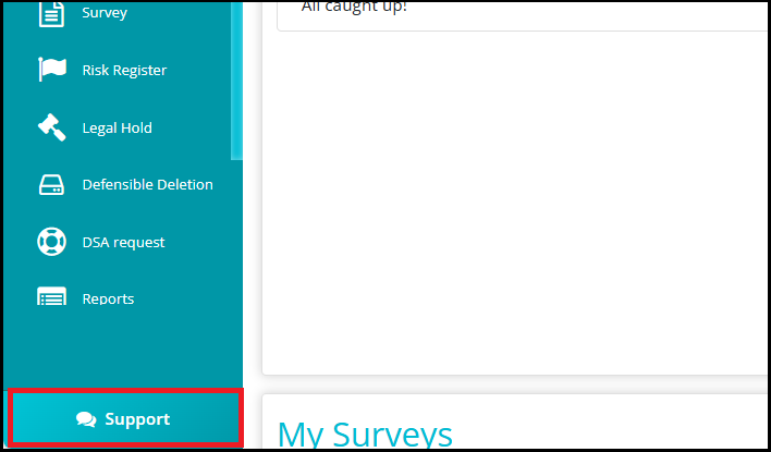 • Locate the Support button at the bottom of the sidebar. Click on it to access the support section or help with resources.