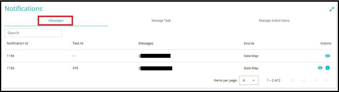 - Once the note is sent, the tagged users (those mentioned using the "@" symbol) can view it on their Dashboard under the Notifications section, in the Messages tab.