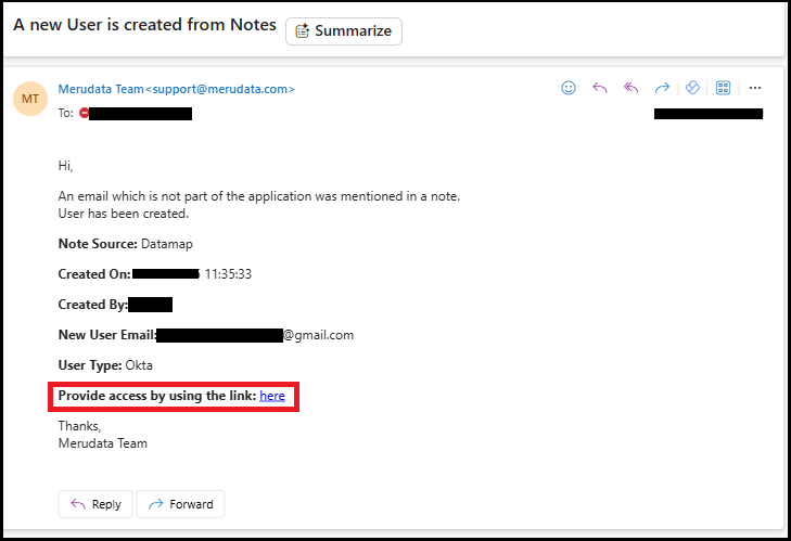 - The new user will also receive an email notification stating they were mentioned in a note.