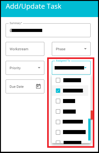 a. View and modify the Summary, Workstream, Phase, Priority, Assigned To, Due Date, and Status.