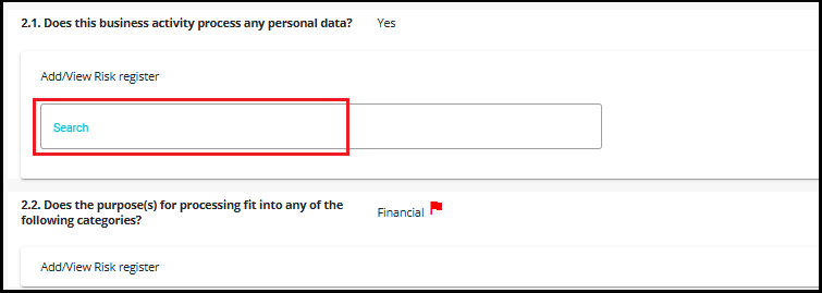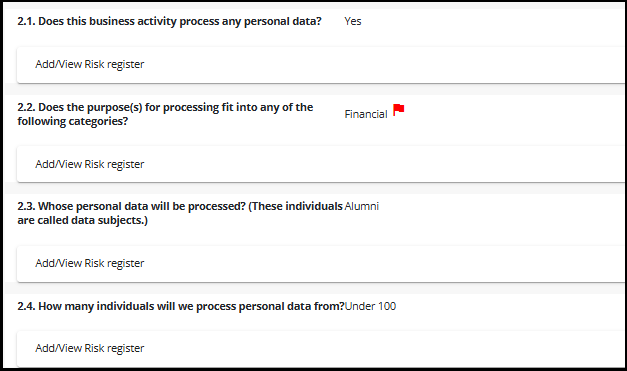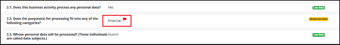 - Answers with Risks mapped to them will have a red flag present next to it as shown below.