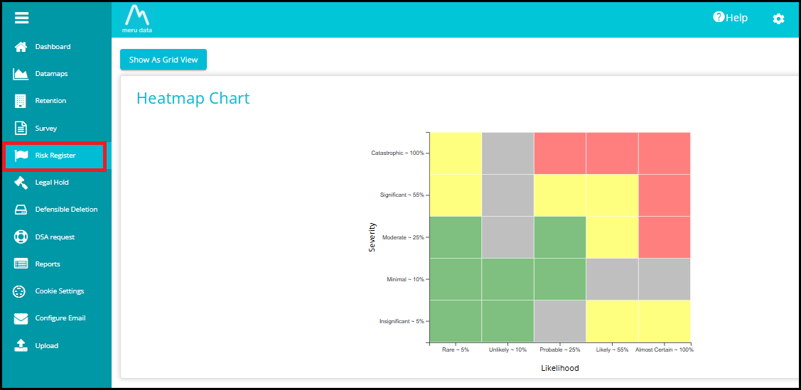 - By default, the Risk Register page will display the risks in the form of a Heatmap graph.