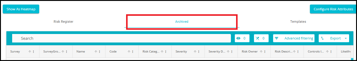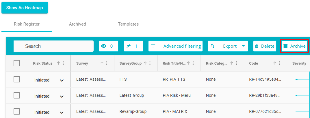 - Risks can be archived by clicking the Archive button on the top right corner.