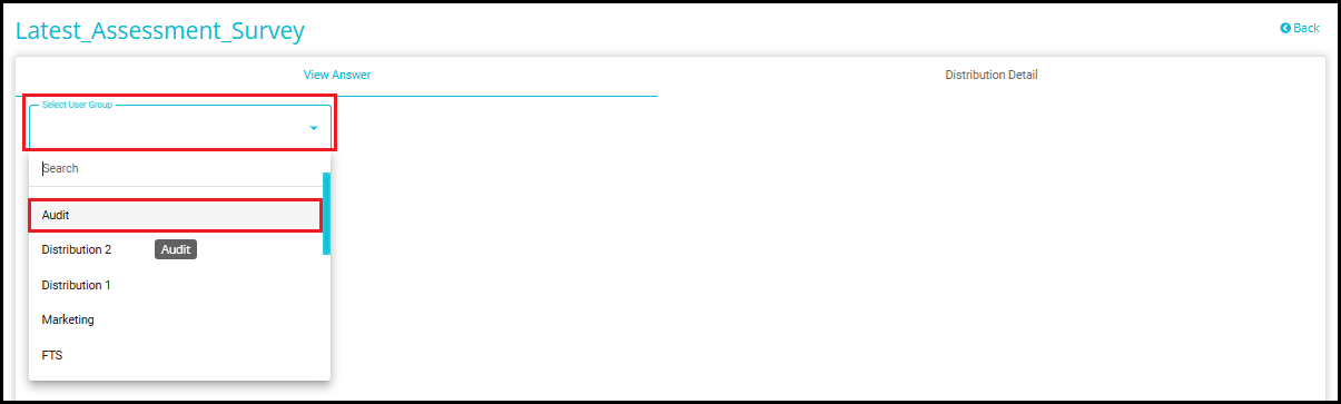 - On the View Answer tab, from the Select-User Group drop-down menu, select one of the user groups to whom the survey was distributed.