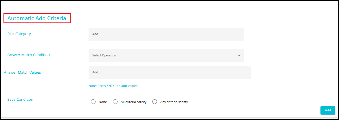 Once the configuration is made, scroll down to the Automatic Add Criteria Section.