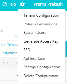 - Click on the Settings icon present on the top of any screen on Data Governance Tool.