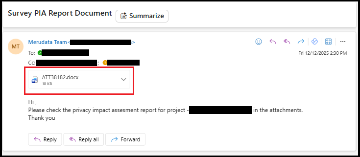 - The answered Privacy Impact Assessment will now be visible on the View Answer page, below the Survey.